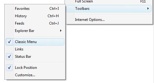 Internet Explorer 7 does not show the "classic" menu from the previous version by default. All the functions of it are still available, but some prefer the menu until they get accustomed to the new interface. To show the classic menu: