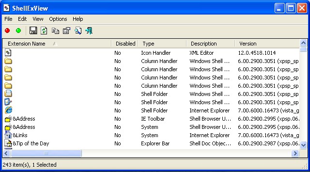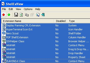 ShellExView is a very useful program that shows detailed information about the shell extensions present in your installation of Windows. Shell extensions basically attempt to improve certain aspects of the Operating System (OS). You might notice when you install some programs that they add some text to pre-existing menus (often the right-click context menu), such as "Add xxx to archive" or "Scan with xxx" when you right-click in Windows Explorer or My Computer. This is known as a context menu. Some well-known examples include WinRAR and WinZip, both of which can compress and archive (as well as decompress and unarchive) files, or antimalware programs such as Norton, McAfee, or ZoneAlarm.