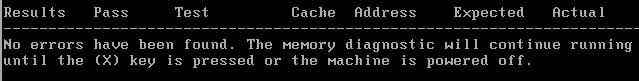 7. Allow the diagnostic to run for at least 1 pass (6 tests). When you are done, simply press X to restart your computer and take out the floppy or CD.
