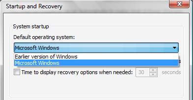 5. To change the default OS, choose it from the drop-down list. "Microsoft Windows" is Vista, and "Earlier version of Windows" is XP or whatever other pre-Vista Microsoft OS you have on your computer.