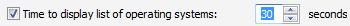 6. To stop the default OS from loading after the time, uncheck the checkbox. Or, to change the time the list is displayed before the default OS is loaded, type a new number (in seconds) you would like it to be displayed.