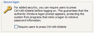 4. Click the Advanced tab and uncheck 'Require users to press Ctrl + Alt + Delete' if it is checked.