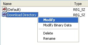 4. Right-click the Download Directory string and click Modify