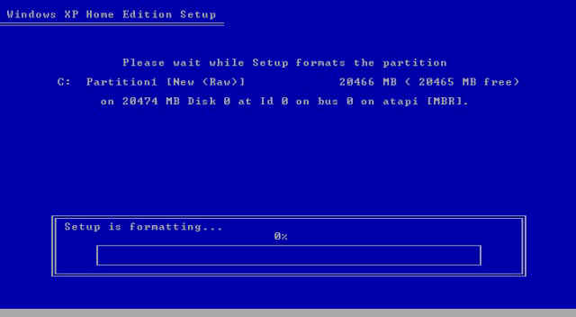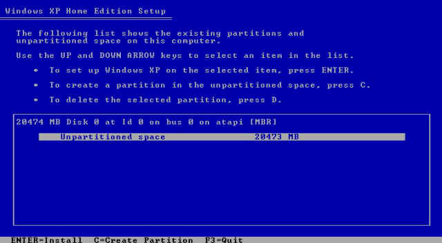7. Choose the partition or unpartitioned space to install Windows XP on.