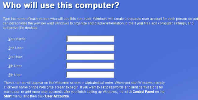 24. Type in the names of the people who will use the computer. You can always add, remove, or modify users later.